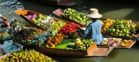 Enjoy tropical fruits and vegetables, fresh coconut juice and local food cooked right off the boats. Floating markets are Taling Chan Market, Bang Ku Wiang Market, Tha Kha, and Damnoen Saduak.
